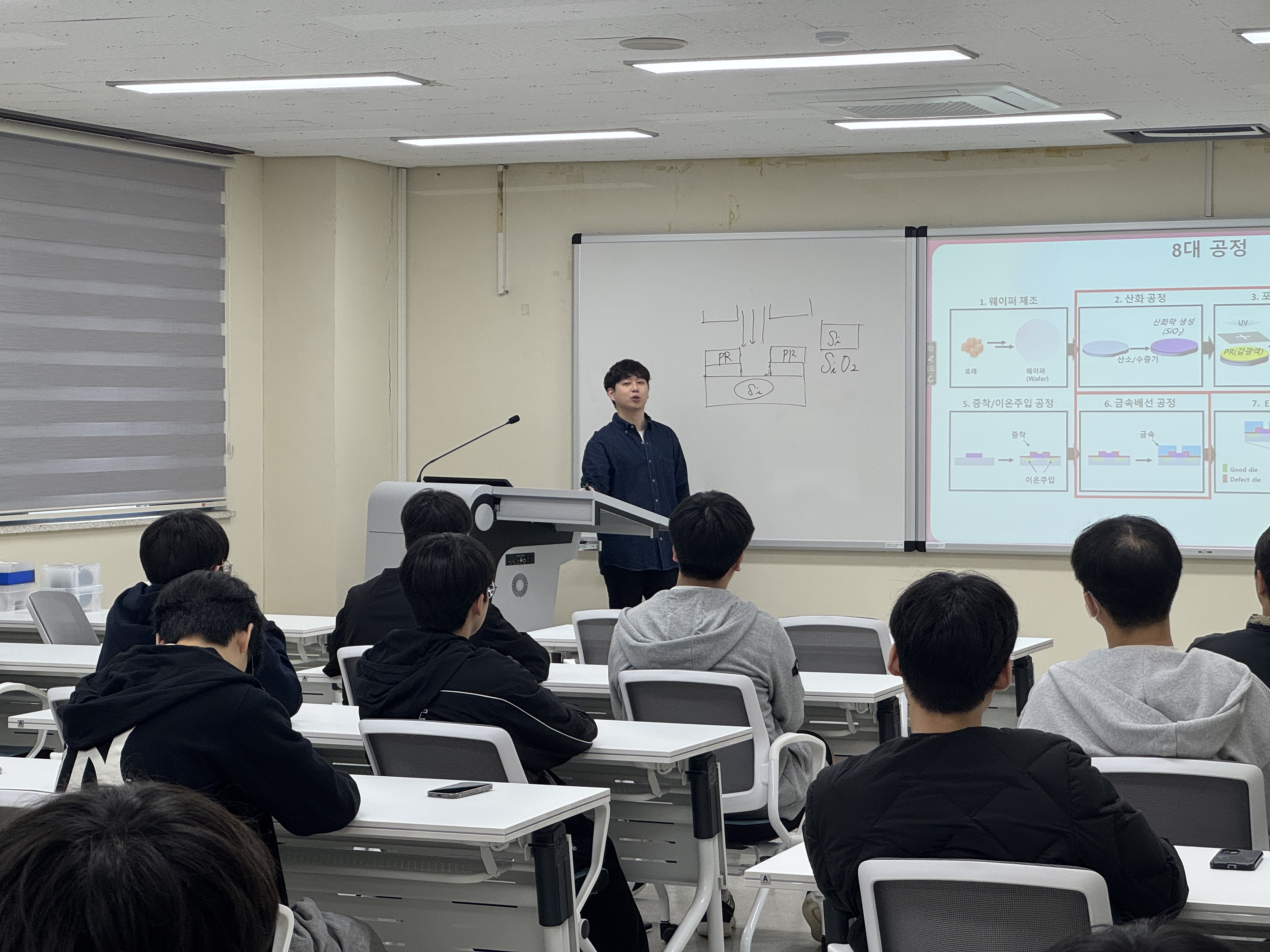 반도체 공정실을 실제로 보는 고등학교 학생들이 질문도 많이 하고 반응이 아주 뜨거웠답니다.