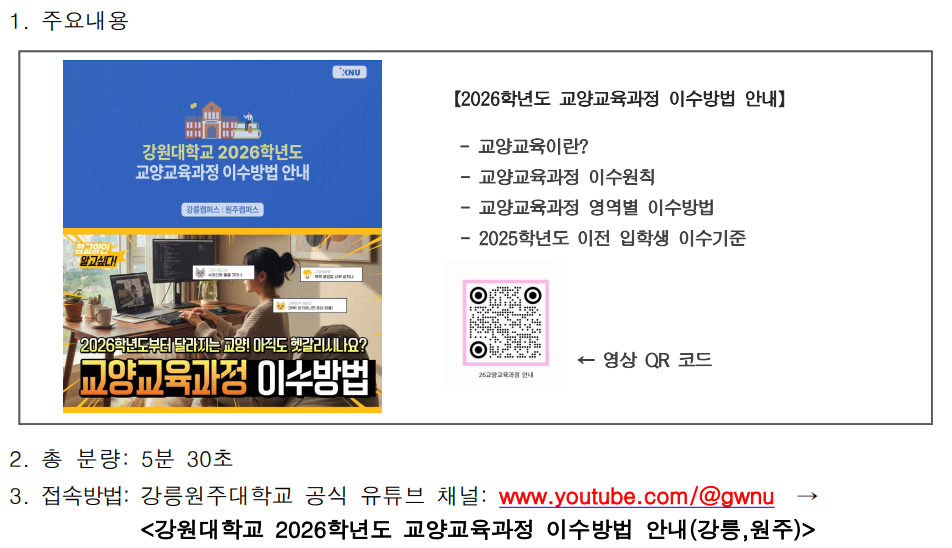 2026학년도 교양교육과정 이수방법 안내 영상 URL 안내