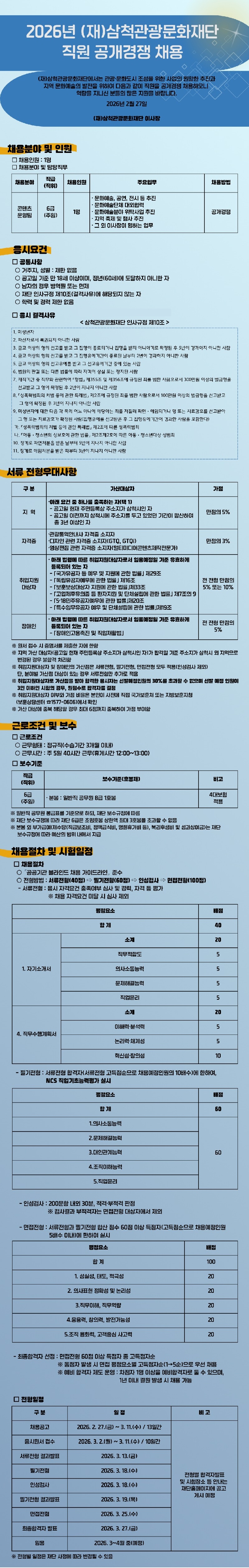 2026년 (재)삼척관광문화재단 직원 공개경쟁 채용