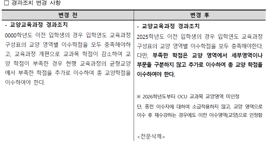 교양교육과정 개편에 따른 경과조치 안내