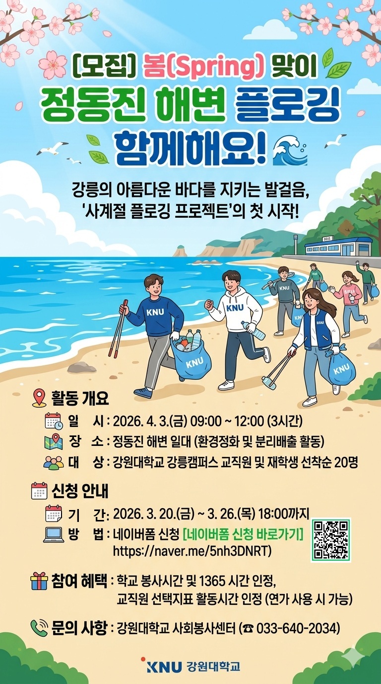 fnctId=bbs,fnctNo=804 2026학년도 해람프로보노 봉사단 사계절 플로깅(봄) 봉사활동 참여자 모집 작성일 2026.03.20 작성자 김혜리 조회수 25 첨부파일 첨부파일이(가) 없습니다.