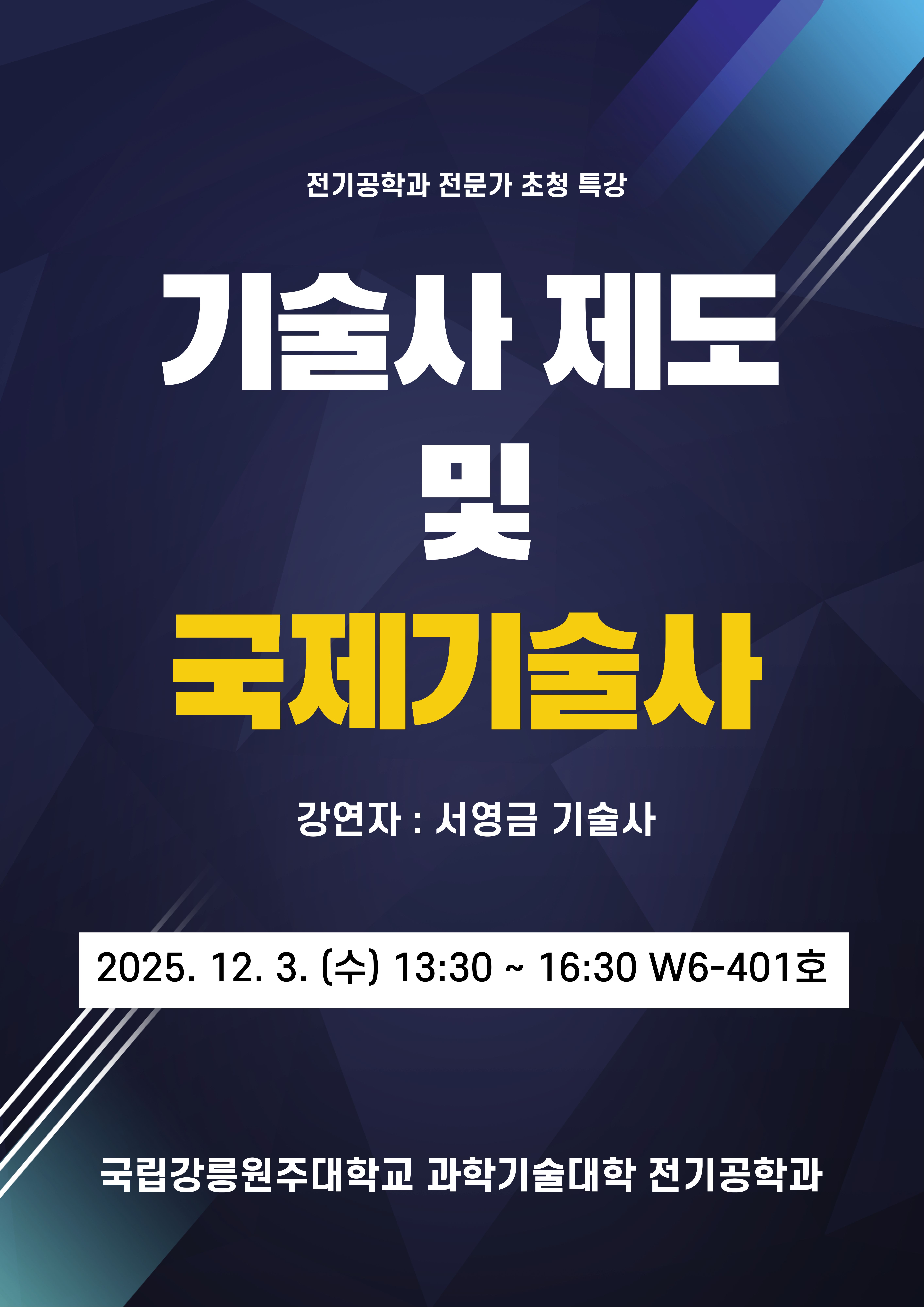 fnctId=bbs,fnctNo=877 [필독]전기공학과 전문가 특강 기술사 제도 및 국제기술사 작성일 2025.11.24 작성자 정하나 조회수 797 첨부파일 첨부파일이(가) 없습니다.