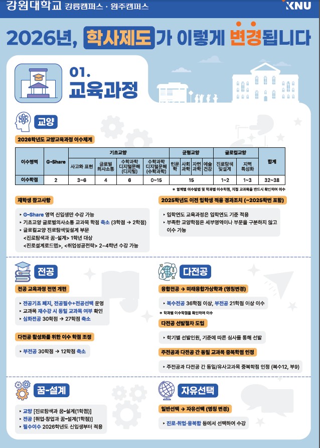 fnctId=bbs,fnctNo=596 [공지]2026년 통합 강원대학교 교육과정및 학사제도 안내 작성일 2026.02.27 작성자 최수진 조회수 543 첨부파일 2026년 통합 강원대학교 교육과정및 학사제도 안내.pdf