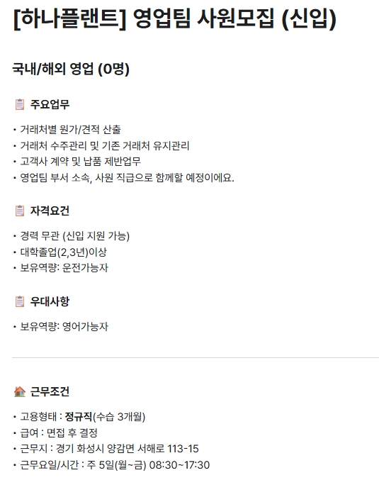fnctId=bbs,fnctNo=1253 [하나플랜트] 영업팀 사원 모집(신입) 작성일 2025.10.28 작성자 최지은 조회수 995 **학과 졸업생이 많은 기업입니다. 관심 있는 학생은 연락주세요! 첨부파일 첨부파일이(가) 없습니다.