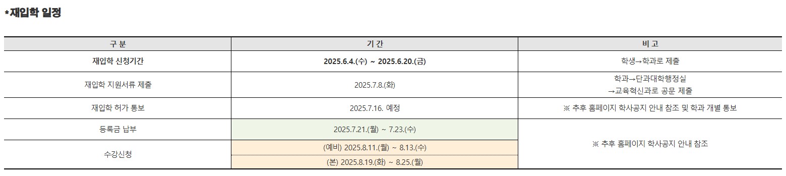 fnctId=bbs,fnctNo=793 2025학년도 2학기 재입학 추진 안내 작성일 2025.06.16 작성자 이경란 조회수 2125 첨부파일 화면 캡처 2025-06-16 130216.jpg 2025학년도 2학기 재입학 추진 안내(문).hwp 2025학년도 2학기 재입학 관련 양식.hwp